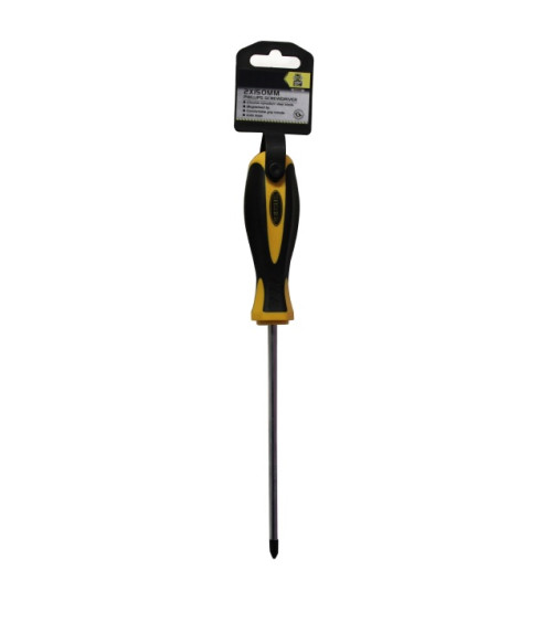 Gripwell Phillips head Screwdriver is made with high grade chrome vanadium steel. It has a Yellow and Black TPR handle for maximum comfort. This screwdriver provides high durability and strength and has a magnetic tip to ensure screws do not get lost. It is perfect for your home or worksite needs. Size: 0 x 150mm.