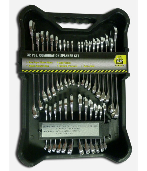 32PC MM / AF CRV Combination & Stubby Spanner Set in Tray