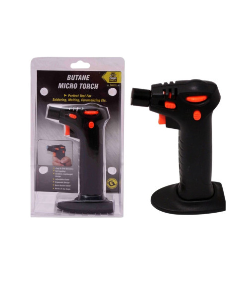 Gripwell Micro Butane Torch The Gripwell Micro Butane Torch is a versatile and reliable tool designed for precision and ease of use, making it perfect for various culinary, crafting, and DIY applications. Adjustable Flame: Use the gas flow regulator to control the flame intensity for precise tasks. Versatile Applications: soldering, cooking, camping, and more. Cordless and Lightweight: Compact, portable design for easy handling and operation. Self-Igniting: Features a built-in ignition system for quick and safe start-ups. Safety Features: Equipped with a safety button to prevent accidental ignition. Quick Refill: Refills easily with butane gas (butane not included). Flexible Use: Works efficiently at any angle for added convenience. This micro butane torch combines functionality and safety, making it a must-have for kitchens, workshops, and outdoor adventures.
