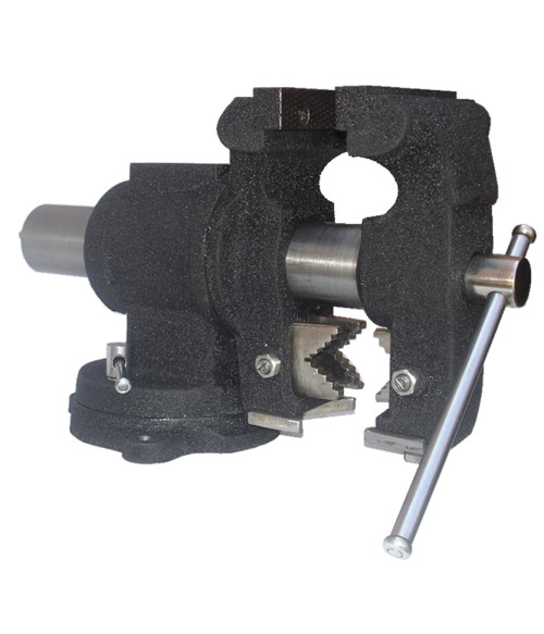 The built-in jaws are grooved for enhanced grip and allow for easy clamping of pipe and other rounded material.