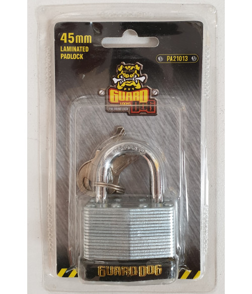 Laminated Padlock is comes complete with 2 keys. This laminated padlock with a hardened steel shackle for extra cut resistance. Ideal for tool boxes lockers or bicycle chains. It features a 45mm body and a single locking. This padlock is a popular choice for general purpose applications.